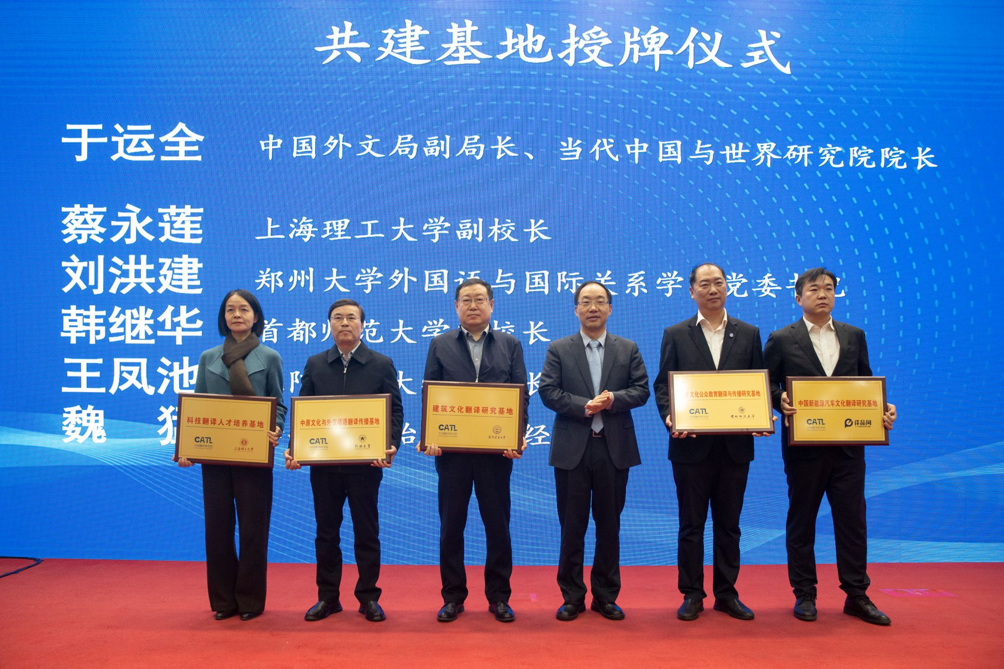 活动中,我校与中国外文局翻译院签署了战略合作协议。于运全代表中国翻译研究院颁发了“中国翻译研究院—沈阳建筑大学建筑文化翻译研究基地”牌匾,王凤池接受授牌。