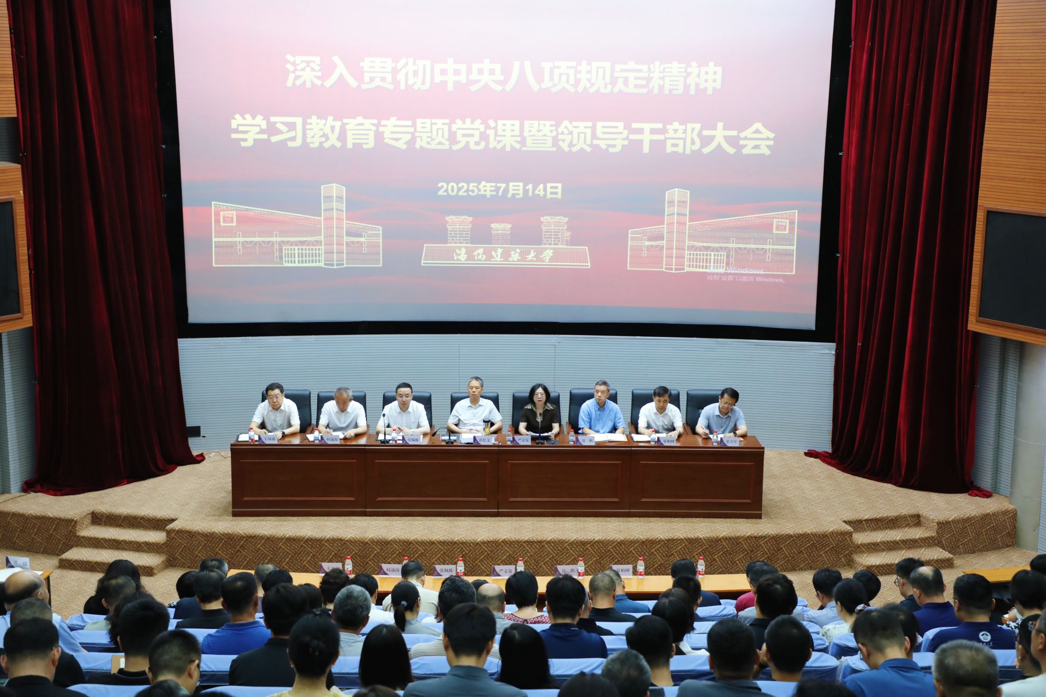 7月14日,学校在新宁科学会堂举办深入贯彻中央八项规定精神学习教育专题党课暨领导干部大会,校党委书记郭长义讲授专题党课,校长严文复部署暑期重点工作,校党委副书记张佩栋主持大会,校领导聂鹏、何通海、夏柏树、王凤池、栾方军,党委常委潘瑞、肖阳、林慧,校长助理吕石磊出席大会。
