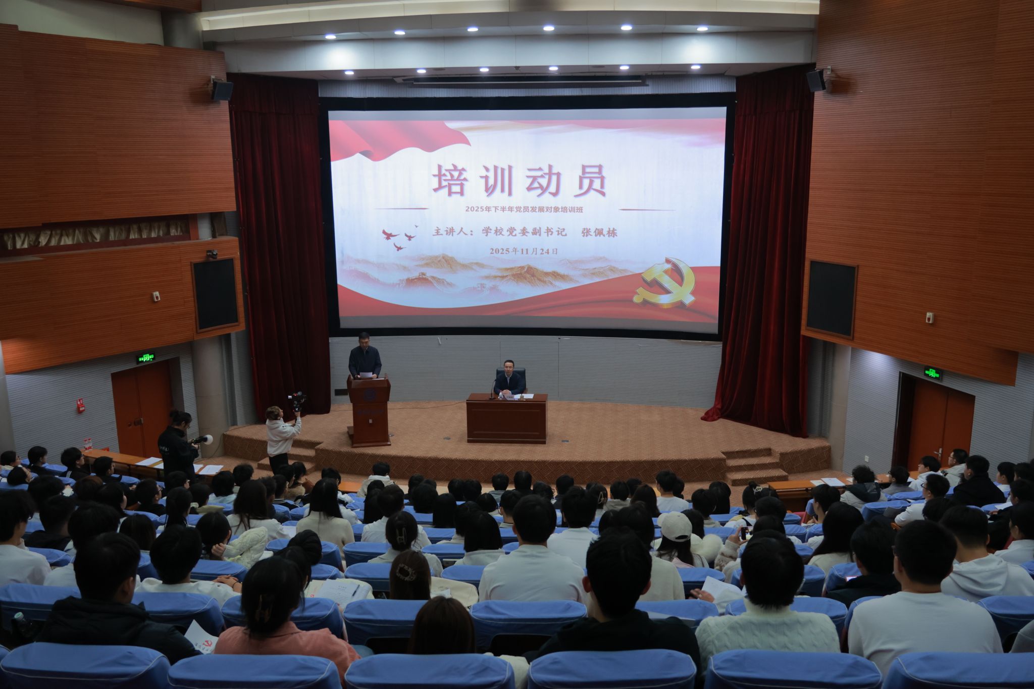 近日,学校党委党校举办了2025年秋季学期党员发展对象和新生预备党员集中培训班。学校党委副书记、党委党校校长张佩栋出席培训动员会并讲话,学校党委常委、组织部部长兼党委党校分管日常工作的副校长潘瑞主持会议并作首场专题辅导报告。