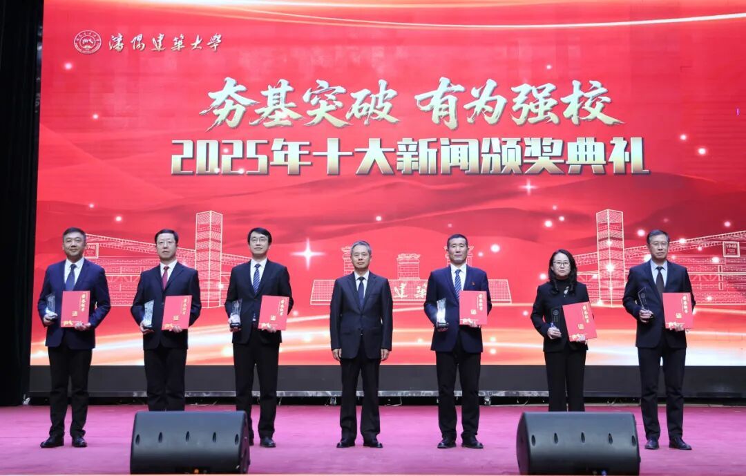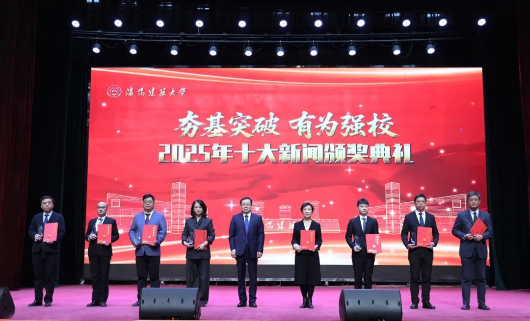 2025年,学校以“一二三四五”工作思路为总牵引,大力弘扬“敢干、苦干、快干、善干”的工作作风,有力推进“四项重点改革”和“四项专项整治”,一项项扎实厚重的成果,铺就了高质量发展的坚实阶梯。典礼上,依次以视频形式公布了十大新闻以及“建大品三学者”“建大英才”获奖名单,校领导、校友代表分别为获奖代表颁奖,勉励大家再接再厉、勇担使命,在新征程上再创佳绩。