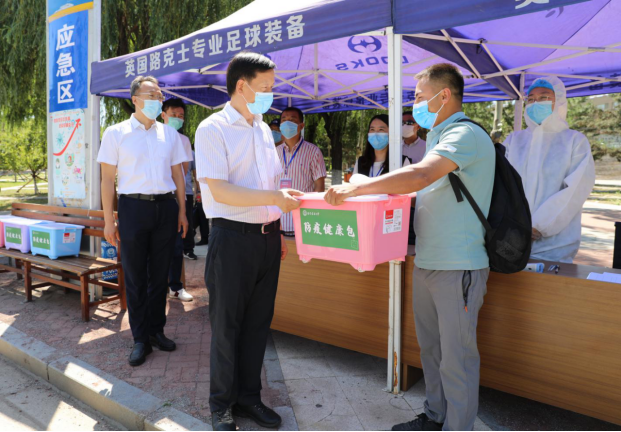 6月16日清晨,相关部门及单位负责人、辅导员以及校医院医务人员、保卫后勤人员提前到岗,以饱满的热情等候同学们的久别归来。学校党委书记董玉宽、校党委副书记宁先圣来到学生报到现场,亲切问候返校复学学生,并为学生发放了“防疫健康包”。学生在学校正门有序入校,辅导员对学生进行身份确认、体温监测、今日校园APP扫码签到,学生严格按照学校“一卡”“一表”“一码”“一查”的疫情防控要求进行相关数据的核查,复学报到现场秩序井然。