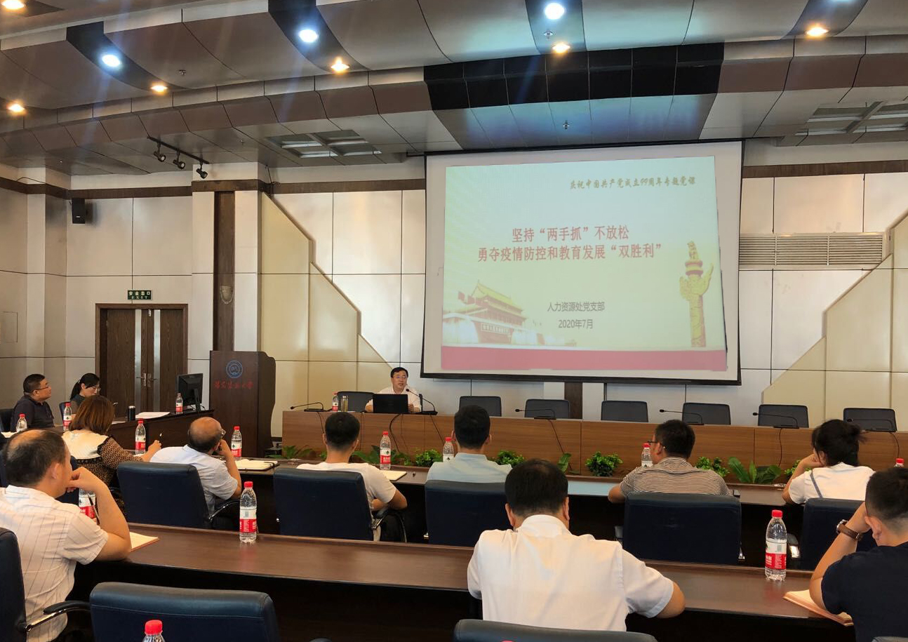 为深入推进“两学一做”学习教育常态化制度化,按照学校主题教育工作安排,7月10日,校长阎卫东在办公楼301会议室为人力资源处党支部作了题为“坚持‘两手抓’不放松,勇夺疫情防控和教育发展‘双胜利’”的主题教育专题党课。学校机关各党支部书记及有关部门代表聆听了党课。