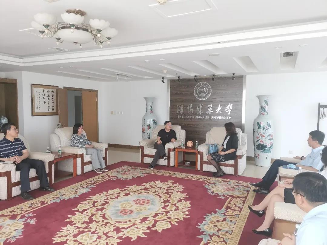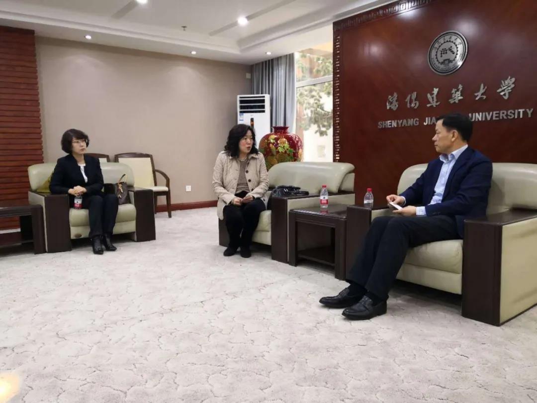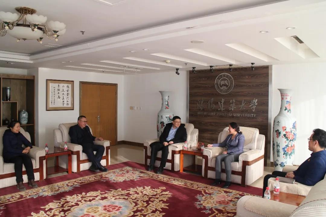 2019年3月,建行辽宁省分行副行长柳旭来校与校党委书记董玉宽交流