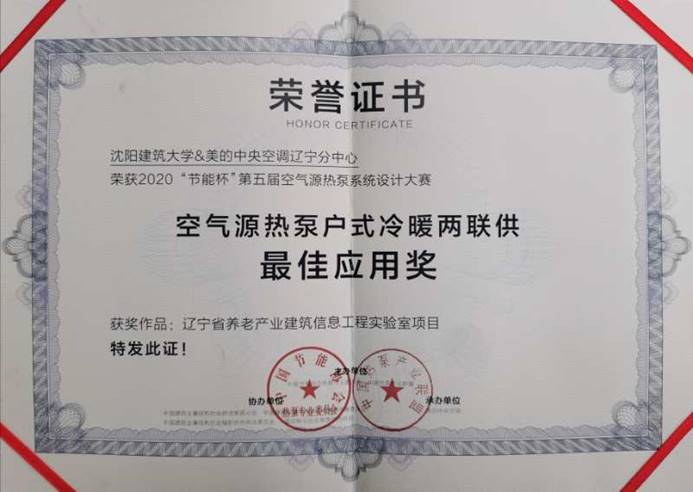 近日,在中国节能协会和中国热泵产业联盟联合举办的“2020年第五届空气源热泵系统设计大赛”评选中,我校养老产业建筑信息工程实验室“空气源热泵户式冷暖两联供”技术获得“最佳应用奖”。养老产业建筑信息研究院将空气源热泵技术与涉老建筑相结合,是着力解决当前适老设施设计施工中节能环保要求的一次有力尝试,此次奖励的获得也是对研究院科研工作的极大肯定。