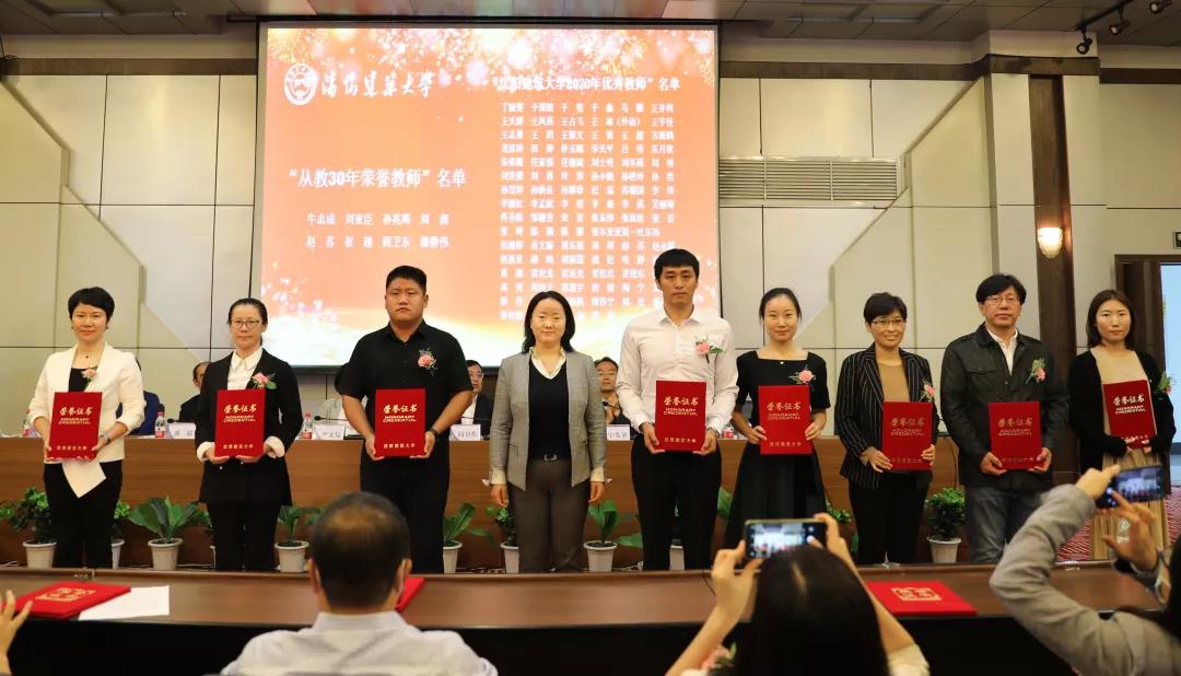 表彰大会在雄壮的国歌声中拉开帷幕。宁先圣宣读了各项荣誉的表彰决定,并对受到表彰的教师表示热烈祝贺。会议表彰了首批“辽建友教学奖”获得者,校优秀教师,师德标兵、师德先进个人,“从教30年荣誉教师”。与会校领导为获奖教师颁发了证书、奖金和奖牌。