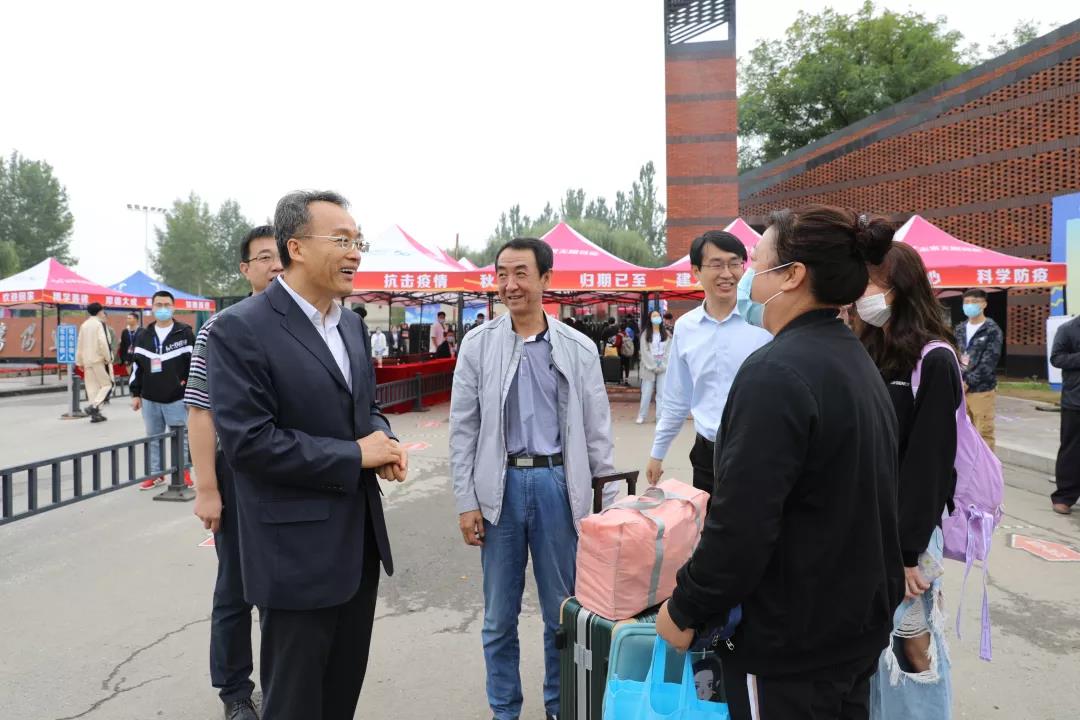 校党委副书记宁先圣,党委常委、副校长张珂在正门入口处欢迎学生返校复学,并与送学生返校的家长在正门外进行了亲切交流。校领导还来到学生宿舍等地,为同学们送去了学校的问候与关怀,询问了同学们的返校行程和学习安排,叮嘱同学们入校后要在做好个人防护的前提下,安排好学习和生活。