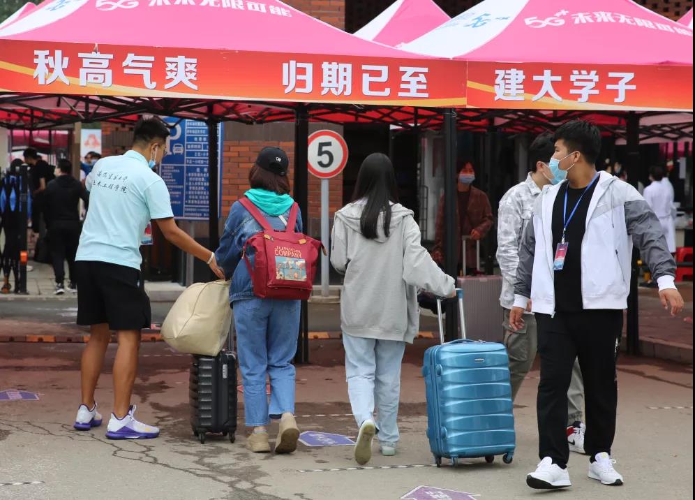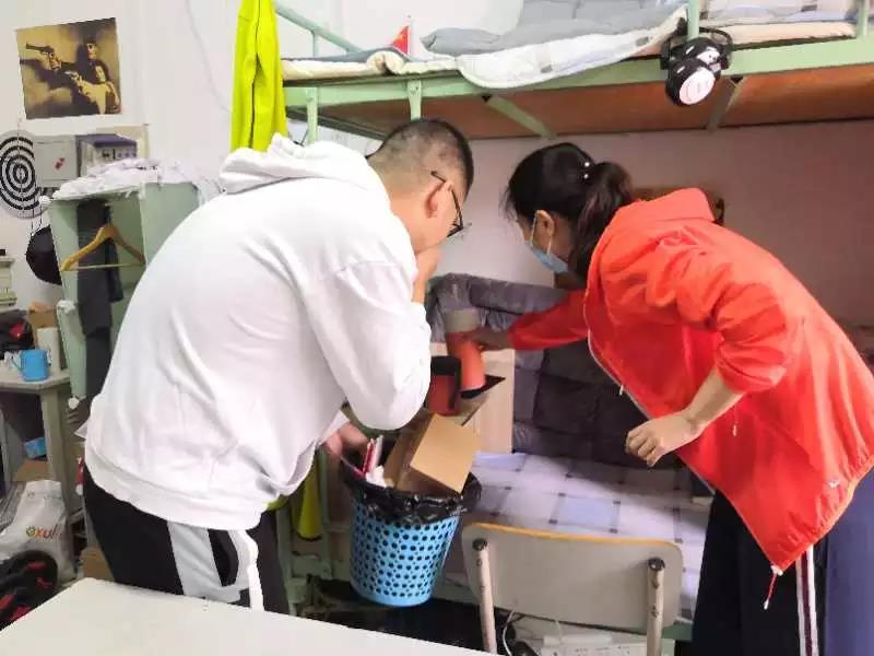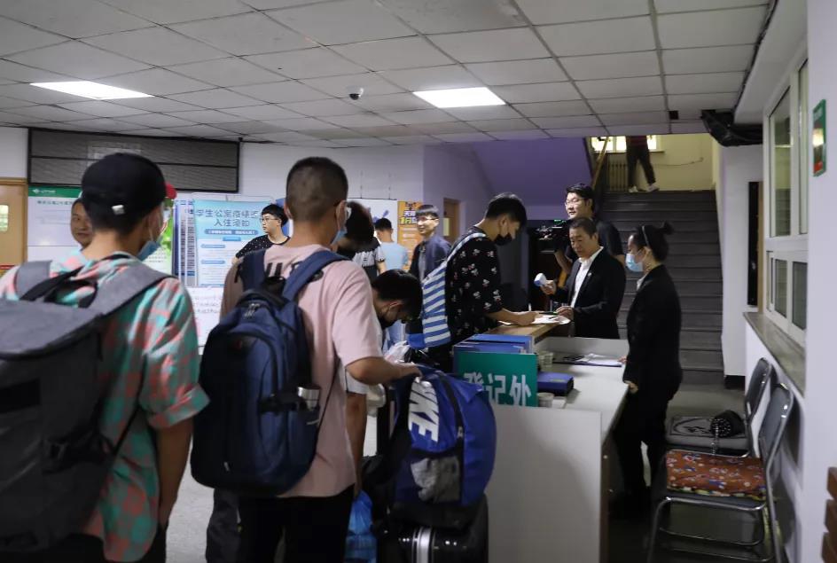 进入学校后,同学们或步行,或乘坐摆渡车回到寝室。辅导员老师来到学生宿舍,迎接许久未见的同学们,提醒学生们做好防疫措施,帮助同学们整理床铺,诉说思念。
