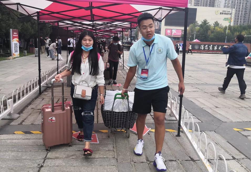 校园雷锋班的学生志愿者们无微不至地为返校学子提供帮助,用灿烂的笑脸热情地欢迎着同学们,现场秩序井然、气氛温馨。