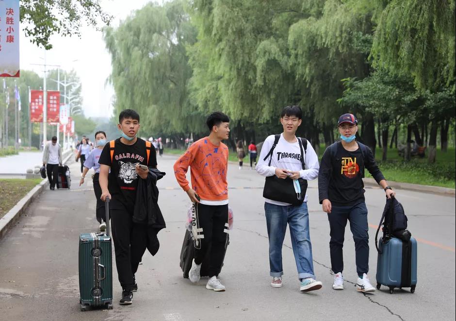 9月12日上午,我校非毕业年级近6000名本科生返校复学。他们拉着行李、戴着口罩,怀着激动的心情陆续返回学校,因疫情沉寂许久的校园充满了久别重逢的欢声笑语。