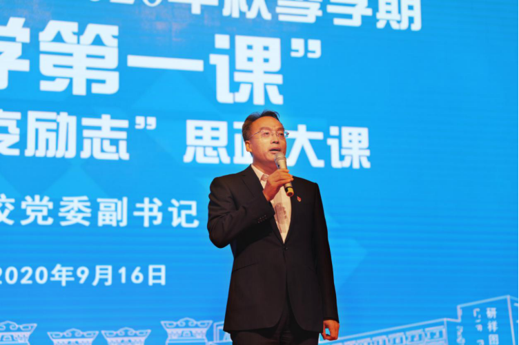 为深入贯彻习近平总书记关于教育重要论述精神,培育和践行社会主义核心价值观,用伟大抗疫精神深入开展爱国主义教育,按照辽宁省委教育工委、辽宁省教育厅统一部署,9月16日,学校组织开展2020年秋季 “开学第一课”——“防疫励志”思政大课活动,学校党委副书记宁先圣在体育中心文体馆向全校师生讲授了一堂精彩的“防疫励志”思政大课。本次思政大课全程进行了直播,马克思主义学院教师,各学院学生工作副书记,全体辅导员,近500名研究生、本科生学生代表在现场,其他师生在线上共同收看了此次“防疫励志”思政大课。学校党委常委、宣传部部长张晓雁主持活动。