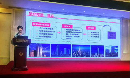 李帼昌受邀在大会上作了“内置工字形CFRP型材的方钢管混凝土结构研究进展”报告,她围绕节约自然资源、降低材料用量、提升建筑结构性能提出了“结构技术升级”的新概念,并从解决“组合材料的本构关系、强度准则,组合构件的工作机理,组合构件的计算方法”三个关键科学问题出发,系统地阐述了课题组在内置工字形CFRP型材的方钢管混凝土结构方面的研究进展,获得了与会者的强烈关注与反响。