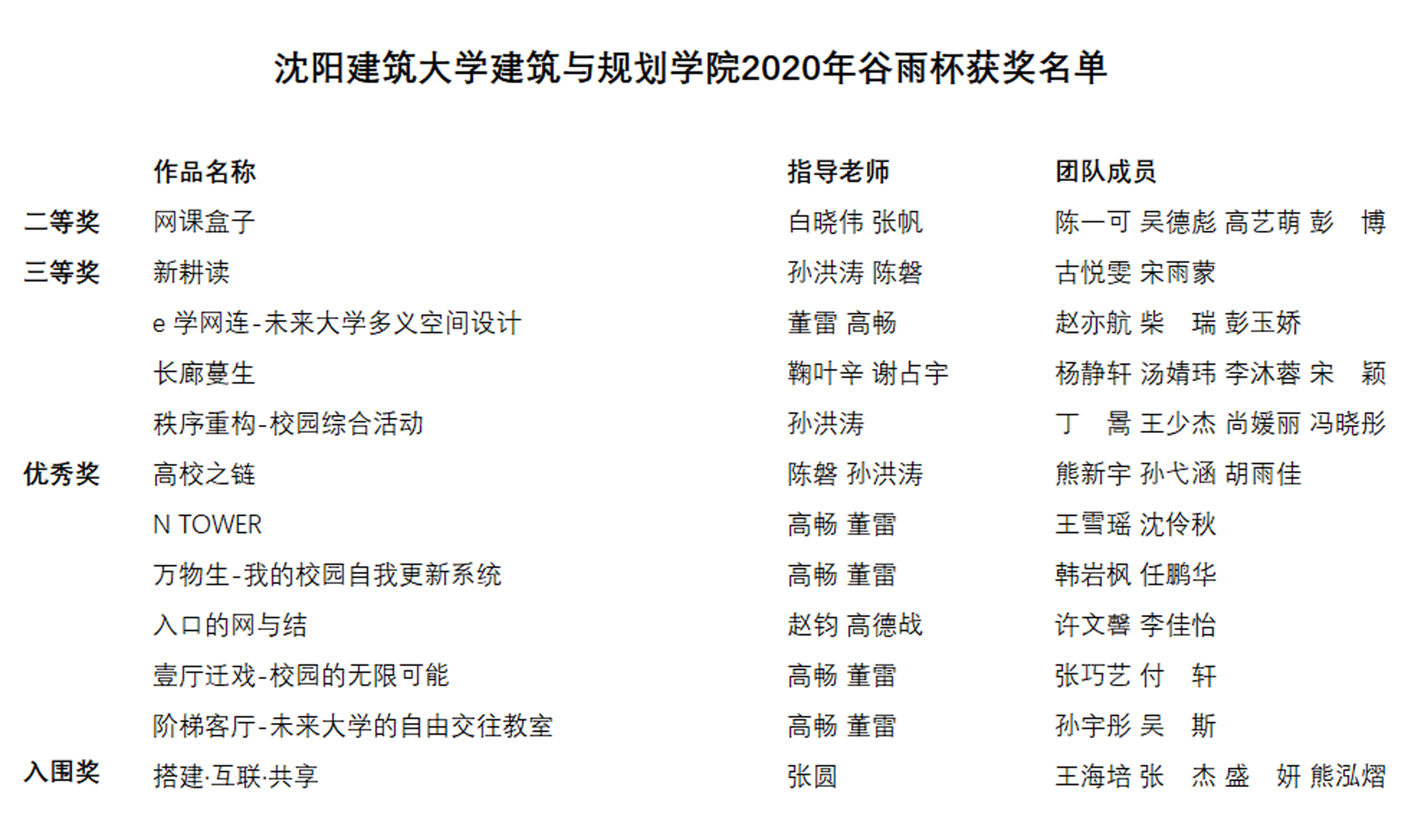 2020谷雨杯全国大学生可持续建筑设计竞赛由全国高等学校建筑学专业教学指导分委员会建筑数字技术教学工作委员会主办,以“未来:我的大学—”为主题。