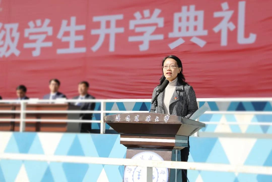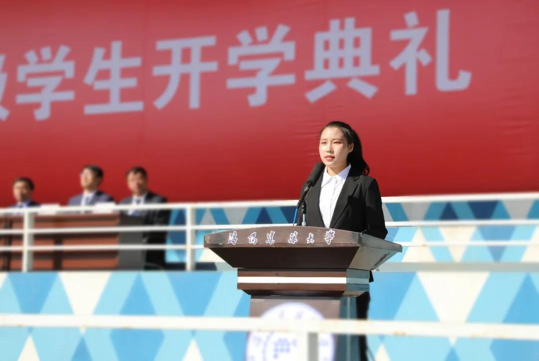 管理学院李丽红教授代表全体教师发言。她希望同学们在建大这个大家庭里博学厚德、再接再厉,做到心中有爱、肩上有担当、脑里有知识,珍惜当下的学习机会,把握时代脉搏,在开拓人生、爱国奉献中实现个人价值。