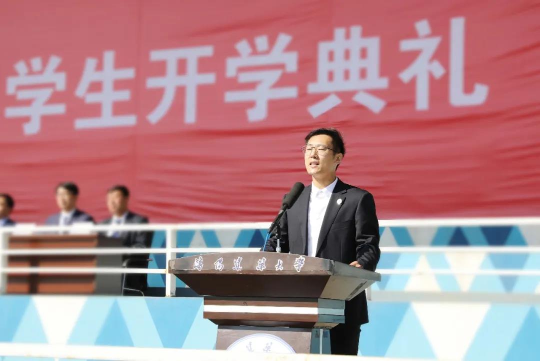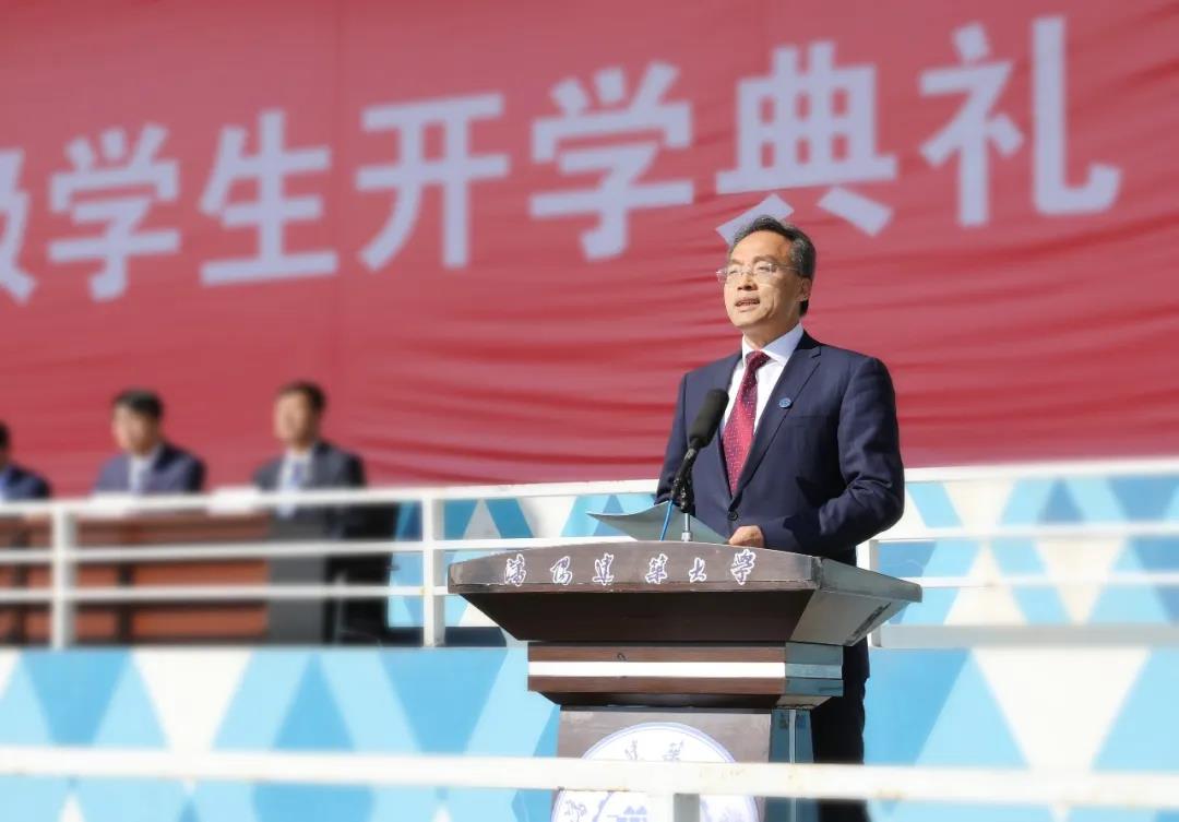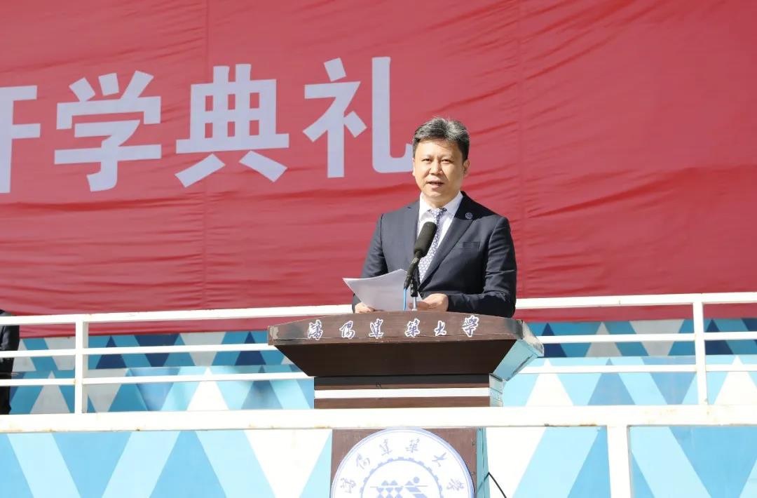 秋阳杲杲映碧空,青春飞扬梦起航。10月16日,学校在第一运动场举行2020级学生开学典礼。校党委书记董玉宽,校党委副书记、校长阎卫东,校党委副书记宁先圣,副校长严文复、李宇鹏,党委常委、副校长冯国会、张珂,党委常委、统战部部长曹传明,党委常委、宣传部部长张晓雁,党委常委、组织部部长潘瑞,建筑工程专业96级校友王林林、通信工程专业2003级校友于注出席典礼。学校相关部门及各学院的领导,师生代表,2020级2850名本科生、1613名硕士研究生、64名博士研究生参加了典礼。宁先圣主持典礼。