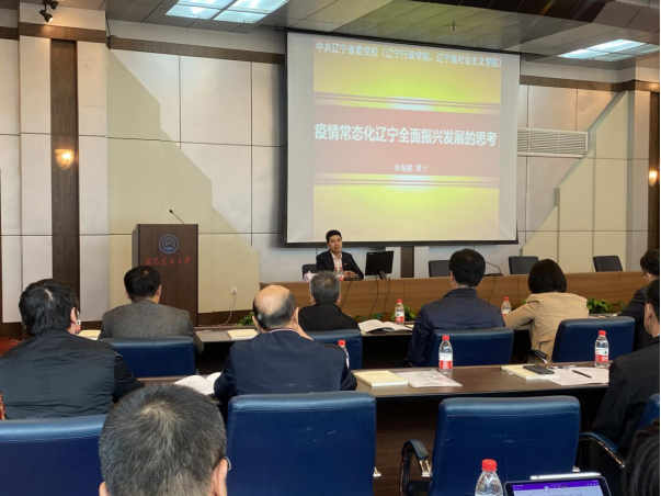 省委党校李海鹏同志应邀作了“疫情常态化下辽宁全面振兴的思考”专题讲授,介绍了当前我省疫情防控的工作情况,分析了疫情常态化下辽宁经济发展面临的困难和严峻形势,并结合实际提出了辽宁全面振兴的前景、方法和方向。