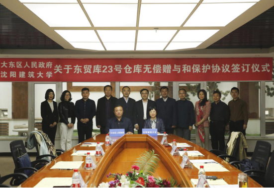 为贯彻落实国家新时代环保生态观的要求,进一步推进对沈阳历史建筑的保护,10月26日下午,学校与大东区人民政府签署了东贸库23号仓库无偿赠与和保护协议。大东区人民政府区长李刚、副区长全瑞丰,校党委副书记、校长阎卫东,副校长严文复出席签约仪式,大东区人民政府城市更新局、房产局、自然资源局、建设局的有关领导,学校党政办、科学技术研究院、基建与后勤管理处、建筑与规划学院、规划设计院负责人参加了签约仪式。