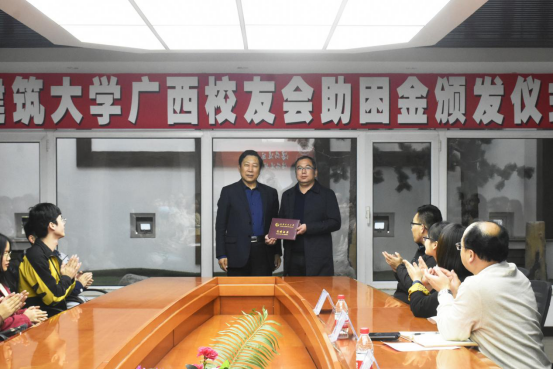 仪式上,陈瑞三为梁孟林颁发了捐赠证书,梁孟林为获得助困金的学生颁发获奖证书。管理学院获得助困金学生代表在发言中感谢了学校、广西校友会对广西籍学生的关心,今后,将怀着感恩的心勤奋学习,通过自己的努力回报母校、回报广西校友会。