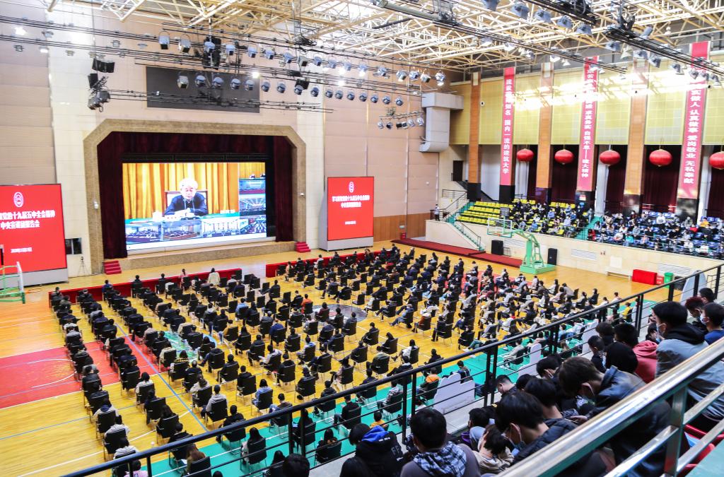 为深入学习贯彻党的十九届五中全会精神,切实将思想和行动统一到党中央的决策部署上来,统一到习近平总书记重要讲话和全会精神上来,根据辽宁省教育厅文件要求,11月13日,学校组织师生收听收看了学习贯彻党的十九届五中全会精神中央宣讲团报告会。校院两级党委理论学习中心组成员、党支部书记、辅导员和学生共计1300余人聆听了中央宣讲团成员、教育部党组书记、部长陈宝生同志作的宣讲报告。