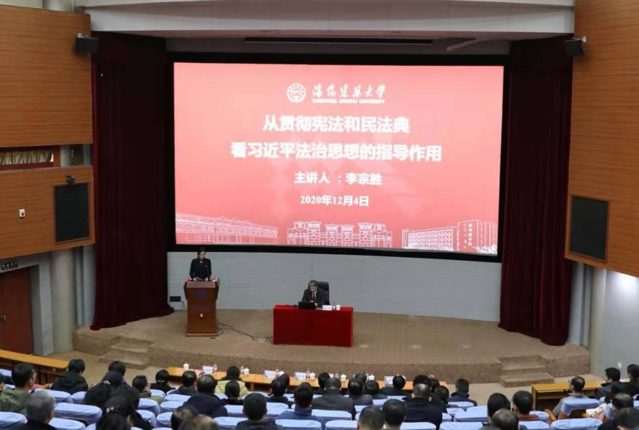 李宗胜以“从贯彻宪法和民法典看习近平法治思想”为题作专题辅导报告,他以一名法律专业人士的视角,用深厚的理论、生动的语言和丰富的案例,结合宪法和民法典的相关条款,详细解读习近平法治思想“十一个坚持”的主要内涵,对广大干部师生深刻理解和把握习近平法治思想、推动依法治校工作起到了重要的指导作用。