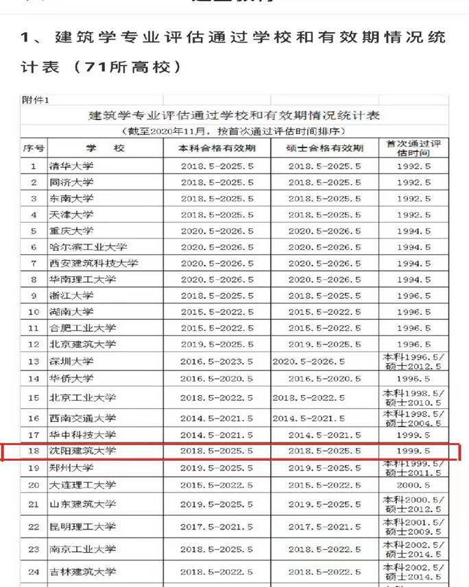 根据《关于公布高等学校建筑学、城乡规划、给排水科学与工程、建筑环境与能源应用工程、工程管理、工程造价专业评估(认证)结论的通告》,中华人民共和国住房和城乡建设部对2020年度通过专业评估(认证)的学校和相关专业进行了统计。统计显示,2020年,共有63所学校的74个专业点通过专业评估(认证),其中,初次通过评估的专业点17个。我校六个土建类专业全部通过住建部评估(认证),全国仅我校和重庆大学两所高校获此殊荣。