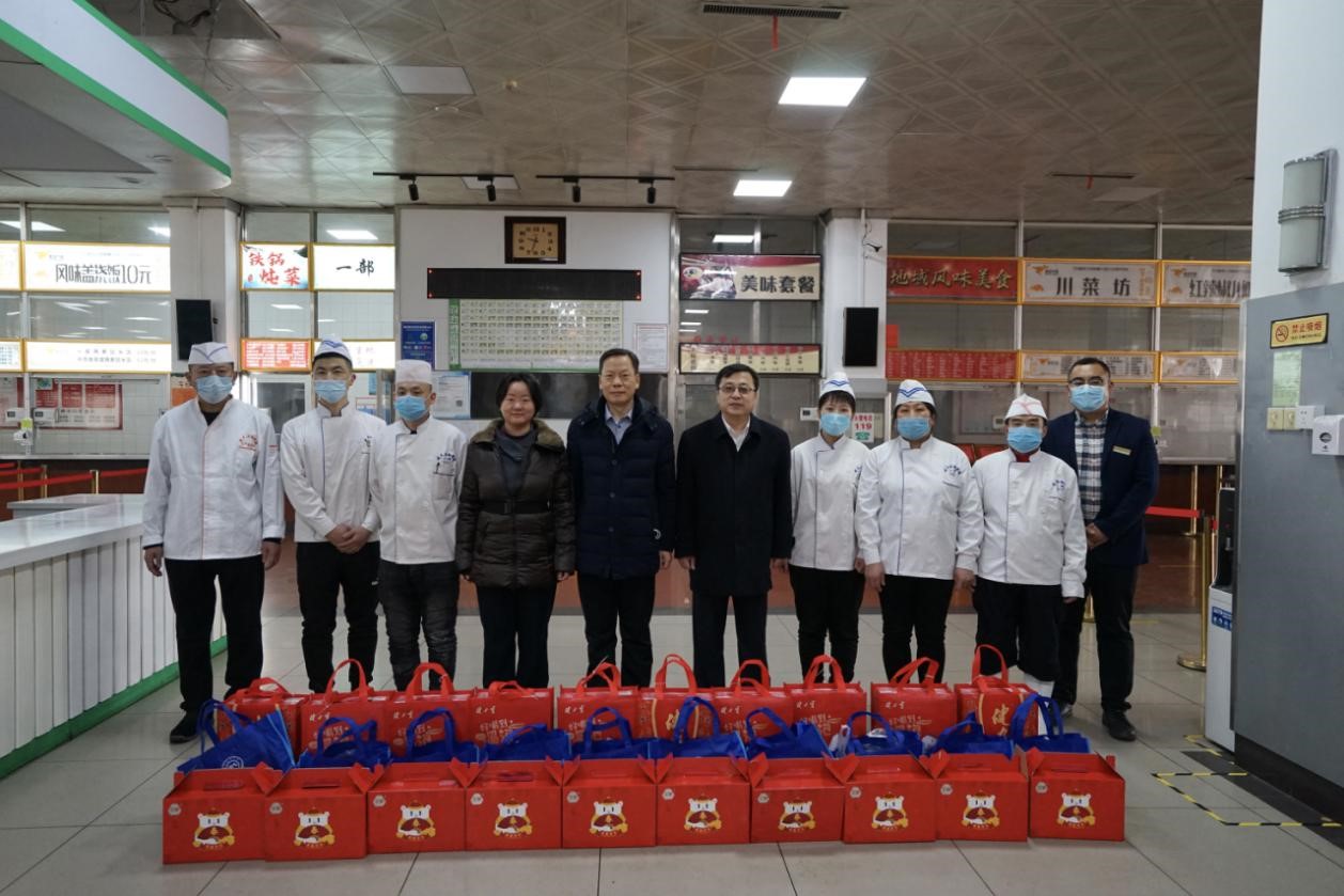 爆竹声声一岁除,春风送暖入屠苏。大年三十,在新春佳节到来之际,学校党委书记董玉宽,校党委副书记、校长阎卫东,副校长李宇鹏,党委常委、统战部部长曹传明,党委常委、组织部部长潘瑞一行走访慰问了春节期间仍然坚守在一线工作岗位的教职工和留校学生,为他们送去新春问候和美好祝福。