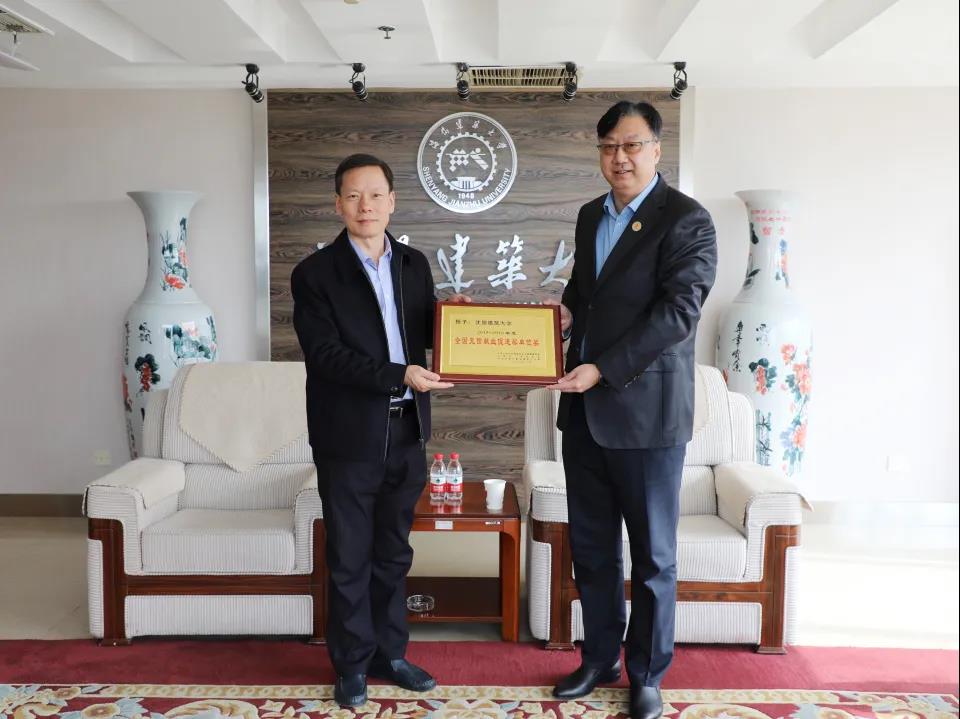 3月26日上午,辽宁省血液中心(沈阳中心血站)站长蒋立柱一行来校,授予学校“2018-2019年度全国无偿献血促进奖单位奖”奖牌。学校党委书记董玉宽、副校长严文复会见了蒋立柱一行,董玉宽代表学校接受奖牌,严文复为来宾赠送了建大金米。