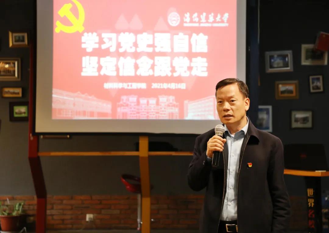 报告会后,曲建武与学校领导来到世界名校沙龙,参加了材料学院举行的“学习党史强自信、坚定信念跟党走”主题党课活动。本次党课创新了活动形式,融入了团队训练技术和教练技术,增加了活动的参与性和创造性。