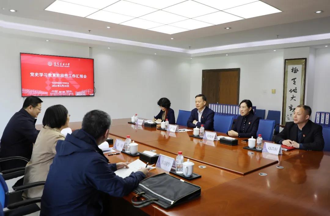 会议期间,巡回指导组结合学校党史学习教育阶段性工作报告,重点查阅了学校党史学习教育实施方案、领导小组文件、工作简报、读书班、“我为师生办实事”实践活动、各基层党委党史学习教育开展情况等工作材料,对我校工作开展情况和档案材料健全、完备、规范化程度给予好评。认为我校在政治引领、组织安排、学习教育、工作调研、为师生办实事等方面抓得紧、做得实、载体新、有特色,对下一阶段工作提出要求,一要提高政治站位,持续推进党史学习教育走深走实;二要把牢党史学习教育的正确方向,准确把握“规定动作”,精心开展“自选动作”;三要注重党史学习教育载体平台的优化和整合,特别是充分利用好红色资源,让党史学习教育接地气、见实效。