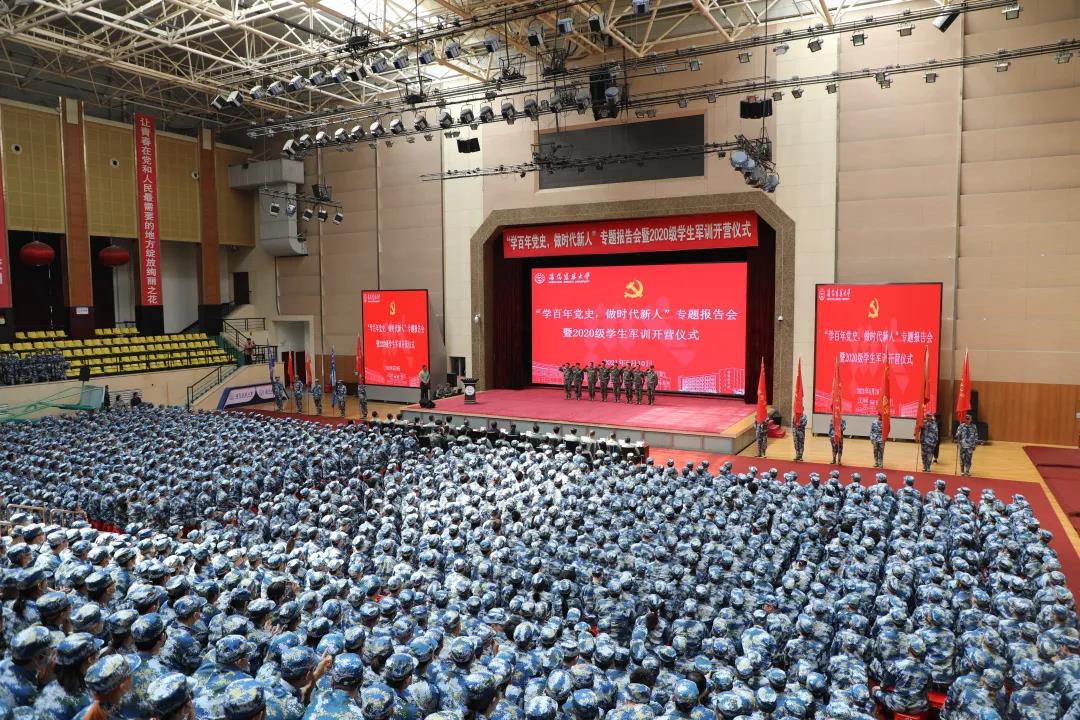 5月10日上午,学校“学百年党史,做时代新人”专题报告会暨2020级学生军训开营仪式在体育中心文体馆举行。学校党委副书记、校长阎卫东,党委常委、宣传部部长张晓雁出席活动。学校相关部门负责人,各学院学生工作负责人、辅导员以及全体2020级参训学生参加了活动。辽宁省国防教育讲师团专家、辽宁省全民国防教育模范讲师王辅东大校作为特邀嘉宾参加活动并作专题报告。