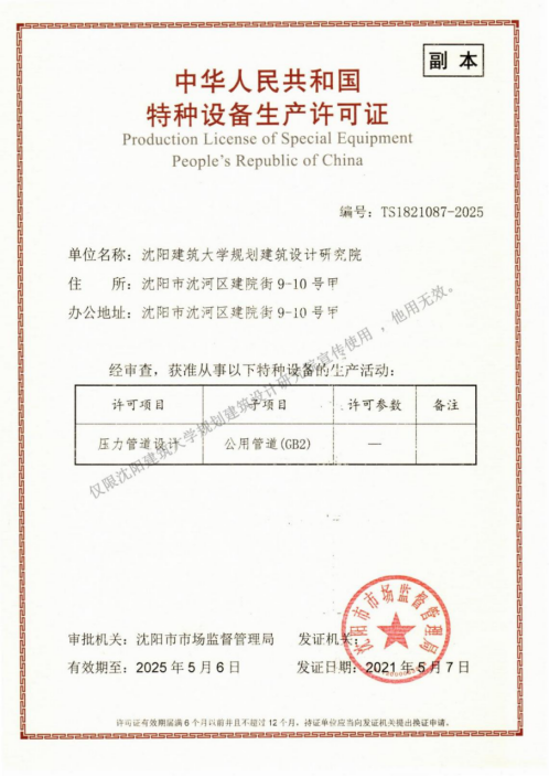 近日,我校规划建筑设计研究院正式取得国家特种设备(压力管道设计)生产许可证。