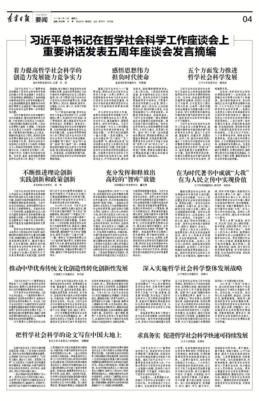 5月18日,辽宁省社科联、中国经济时报联合召开“习近平总书记在哲学社会科学工作座谈会上的重要讲话”发表五周年座谈会,会议由省社科联党组书记、主席石坚主持,省委宣传部副部长、省政府新闻办公室主任刘忠和,中国经济时报社长兼主编王辉出席会议并讲话。我校党委书记董玉宽与省委党校分管日常工作的副校长邓泉国、辽宁大学党委书记周浩波、东北财经大学校长吕炜、辽宁社会科学院副院长梁启东、大连理工大学副校长宋永臣、辽宁师范大学副校长岳崇兴、东北大学马克思主义学院院长田鹏颖、辽宁大学教授王振宇等在线上作主题发言。