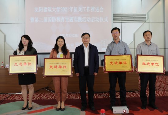 会上,边玉朋为第二届国防教育主题实践活动优秀组织单位颁发奖牌;张晓雁为第三届国防教育主题实践活动承办单位授牌;人民武装部相关负责人汇报了学校2020年征兵工作情况,传达了2021年上级征兵工作文件精神,公布了第三届国防教育主题实践活动方案,并从“明确‘一个目标’,在完成任务上下功夫”“做好‘三全服务’,在用情工作上下功夫”“聚焦‘五类群体’,在精准推送上下功夫”三个方面具体部署了2021年征兵工作;材料科学与工程学院作了征兵工作交流发言。
