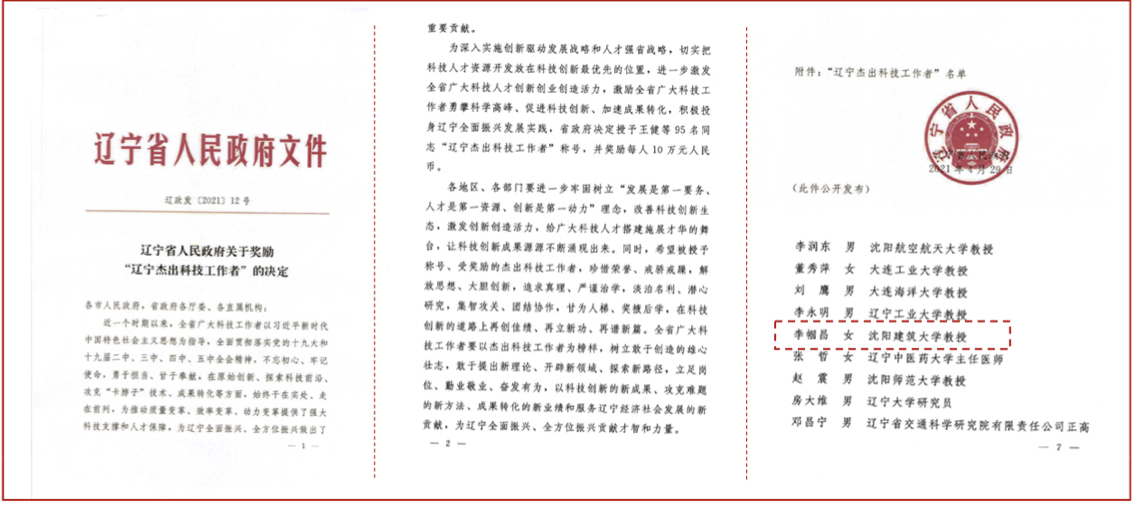 李帼昌教授围绕土木工程领域的重点问题,服务大局,始终站在时代发展前列,紧随科技发展前沿,创新求实,攻坚克难,无私奉献,为推动质量变革、效率变革、动力变革提供了强大科技支撑和人才保障,为辽宁经济社会持续健康发展作出了重要贡献,是省政府的创新驱动发展战略和人才强省战略下的杰出科技工作者。