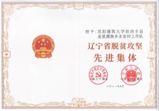 近日,辽宁省脱贫攻坚总结表彰大会隆重举行,会上表彰了全省在脱贫攻坚工作中做出突出贡献的先进个人和先进集体。我校驻西丰县金星乡满族乡永安村工作队被辽宁省委、省政府授予“辽宁省脱贫攻坚先进集体”称号。8年来在学校领导和广大师生的大力支持下,驻村工作队以学校作为坚强后盾深深扎根农村,认真开展精准扶贫,在工作中践行初心使命,用心用力用情为百姓做好事办实事,使永安村党组织的凝聚力和战斗力得到了进一步增强,脱贫攻坚成效显著。
