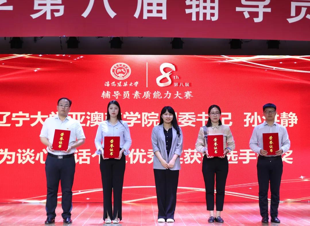 经过激烈角逐,信息与控制工程学院获团体一等奖,机械工程学院、市政与环境工程学院获团体二等奖,管理学院、建筑与规划学院、土木工程学院获团体三等奖;焦红超、矫丹、白皓、张泽茗获理论宣讲个人优秀奖,林赛、栾丽华、谷嫔嫔、常乐获案例分析个人优秀奖,宫巍、高舒欣、赵晓旭、徐英儒获谈心谈话个人优秀奖。