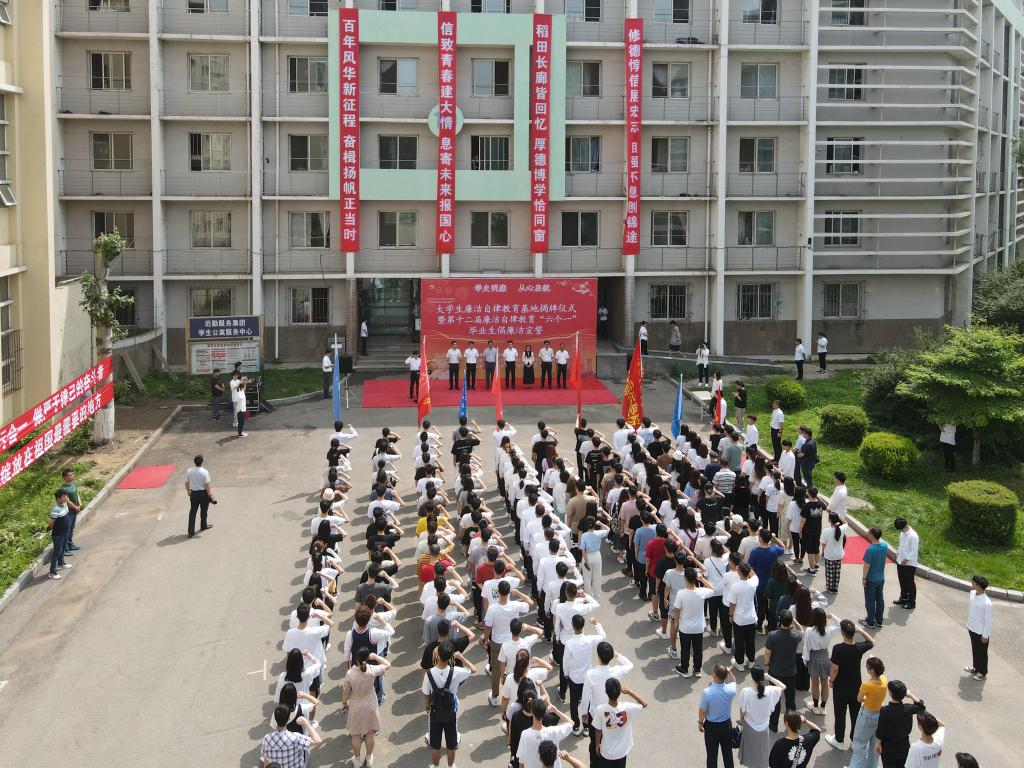 为进一步落实《教育部关于在大中小学全面开展廉洁教育的意见》有关精神,深入学习贯彻习近平总书记重要讲话和十九届中央纪委五次全会精神,不断加强大学生廉洁自律教育工作,积极营造校园廉洁文化育人环境,6月22日,学校在10号学生公寓广场举办“沈阳建筑大学大学生廉洁自律教育基地”揭牌仪式暨第十二届廉洁自律“六个一”毕业生倡廉洁宣誓活动。学校党委常委、纪委书记、监察专员王利印出席活动为基地揭牌并讲话,校纪委、党委学生工作部、党委研究生工作部、校团委、后勤服务集团等部门负责人,各学院纪委书记、学生工作负责人及毕业生党员代表共计200余人参加此次活动。