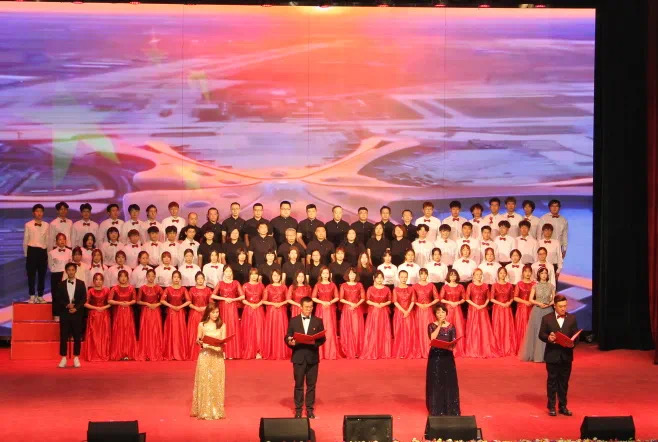机关党员代表的朗诵《旗帜和梦想》表达了对党旗的无限敬仰,对伟大的中国梦的称颂。气势磅礴的合唱《再一次出发》体现了中国人民的雄姿英发,回顾了改革开放的伟大成就,展现了中华民族的伟大复兴梦想,唱响了再一次出发的果敢决心。