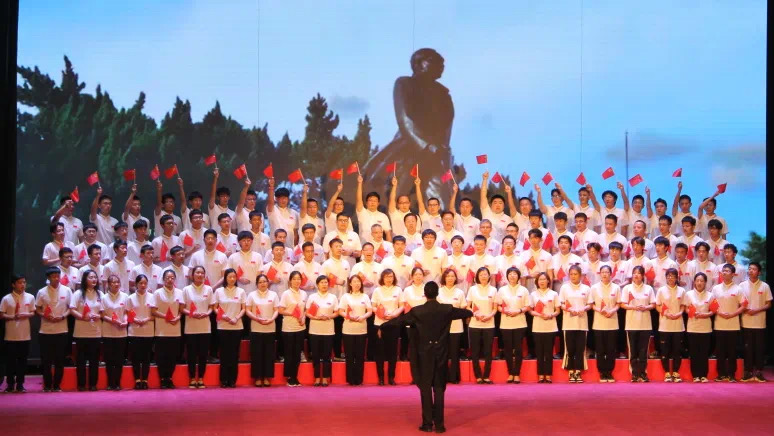 交通工程学院师生代表用一首《太阳最红 毛主席最亲》热情讴歌党的光辉历程和丰功伟绩,唱出对毛主席的无限敬仰,彰显了感党恩、听党话、跟党走的信心和决心,让我们坚定信仰,星火燎原!