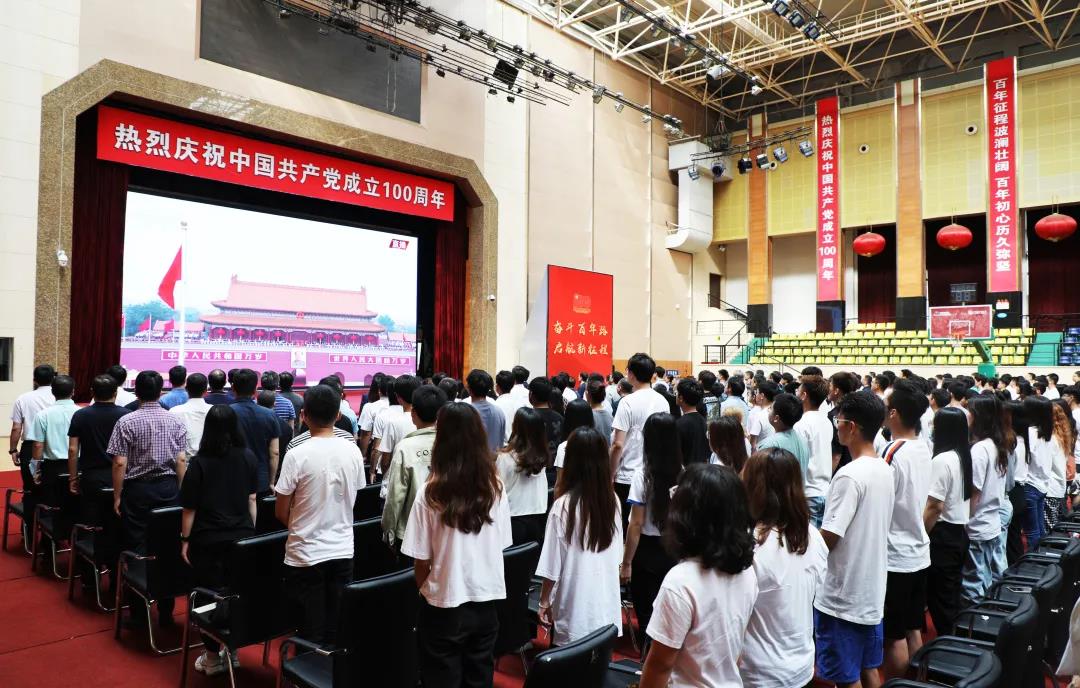 7月1日上午8时,庆祝中国共产党成立100周年大会在北京天安门广场隆重举行,中共中央总书记、国家主席、中央军委主席习近平出席大会并发表重要讲话。学校领导董玉宽、阎卫东、王利印、李宇鹏、冯国会、张珂,党委常委曹传明、张晓雁,中层领导干部和研究生党员代表在学校体育中心文体馆主会场共同收看电视直播。21个基层党组织分别设立分会场,认真组织本单位师生员工通过电视、网络等多种形式收看直播。学校还专门开放第一、第二餐饮中心电视为师生收看提供便利条件。