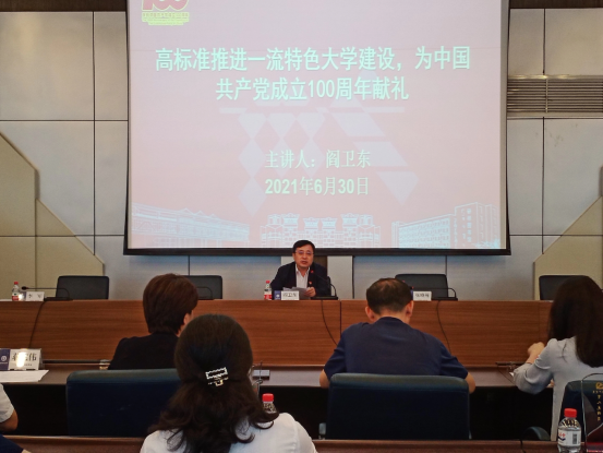 为庆祝中国共产党成立100周年,6月30日下午,校党委副书记、校长阎卫东在办公楼301会议室作了题为“高标准推进一流特色大学建设,为中国共产党成立100周年献礼”专题党课,信息学院和BIM计算研究中心领导班子成员、师生党员100余人聆听了党课。
