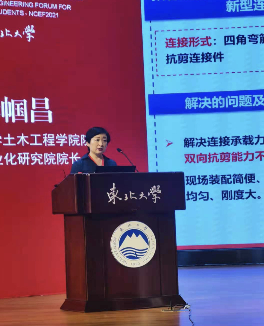 论坛上,李帼昌作了“装配式建筑的发展、现状及未来”特邀报告,从装配式建筑发展的历程,装配式建筑发展的背景意义,装配式建筑的概念、内涵与外延,装配式建筑的发展现状,装配式钢结构建筑技术,装配式建筑发展存在的问题及未来发展方向6个方面进行了深入解读,契合了当前土木界在装配式建筑研究上的发展脉络,引起了与会专家学者和广大同仁的广泛共鸣,彰显了我校在装配式建筑研究领域的综合实力和专业地位,精准把握了土木工程学科面临的挑战和机遇。报告后,李帼昌对我校土木工程学科作了简要介绍。