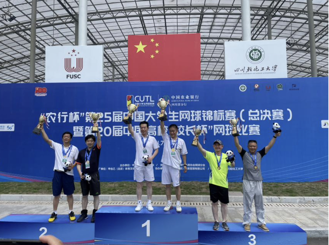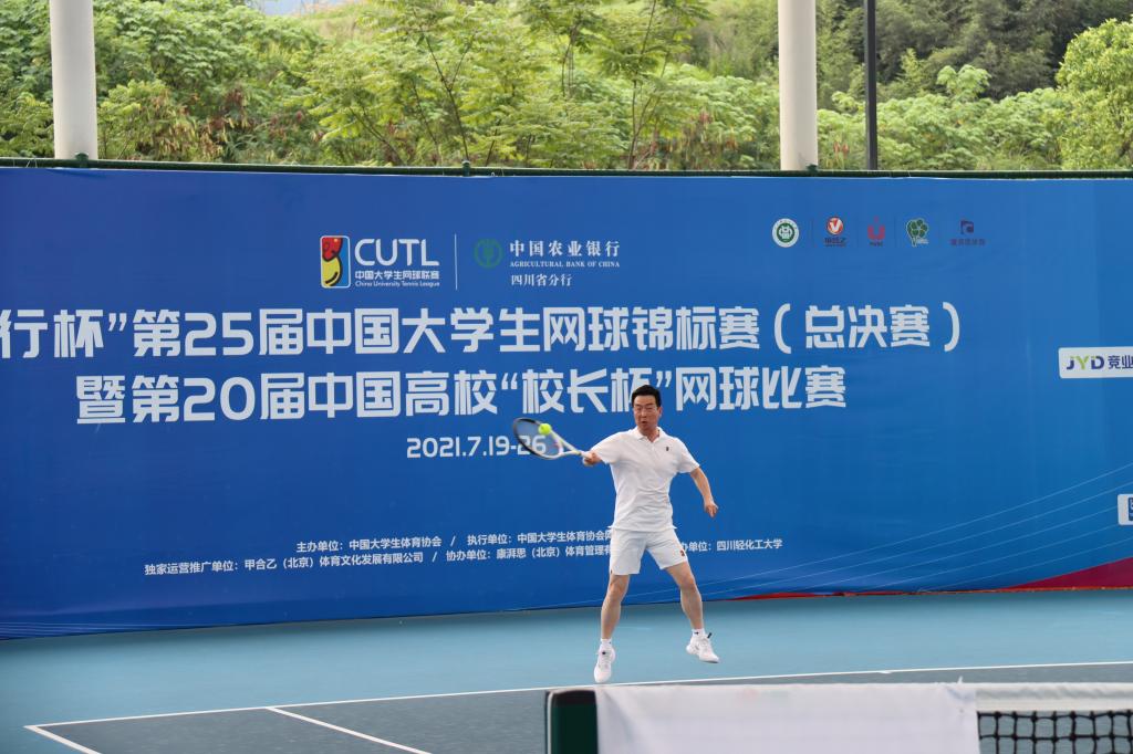 7月22日至26日,由中国大学生体育协会主办、四川轻化工大学承办的第20届中国高校“校长杯”网球比赛在四川轻化工大学(宜宾校区)举行。我校党委常委、纪委书记、监察专员王利印与沈阳化工大学副校长金志浩组合参加校长组乙组双打比赛,经过激烈角逐,以小组第一出线,最终获得校长组乙组双打冠军,充分展现了我校的体育竞技水平。