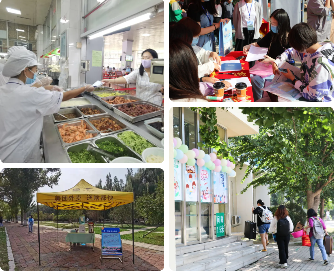 为迎接研究生新生入学,学校后勤集团为西部生活区400余间研究生寝室安装电扇,在公寓新增了咖啡机、充电宝等便民设施,在高层A座、B座增加了洗衣机、直饮水机,对各类自助服务设施进行全面排查检修,确保设施安全运行;对一食堂、二食堂餐厅进行装修装饰,更换节能照明灯,更新售饭窗口灯牌,提升就餐环境品质,并在一食堂、二食堂广场设置新生服务点,提供饮水和咨询服务,在餐厅内新设服务台,方便引导新生就餐;迎新期间,学校为新生提供床上备品大礼包、暖瓶、洗漱用品、洗涤用品、学习文具等商品销售服务,新生报到当天,集团安排3辆电瓶车在校内接送新生;校医院为新生提供入校测温、体检等医疗服务;建大浴池、开水房等设备设施已经检修完毕,为学生提供优质洗浴和生活用水服务。