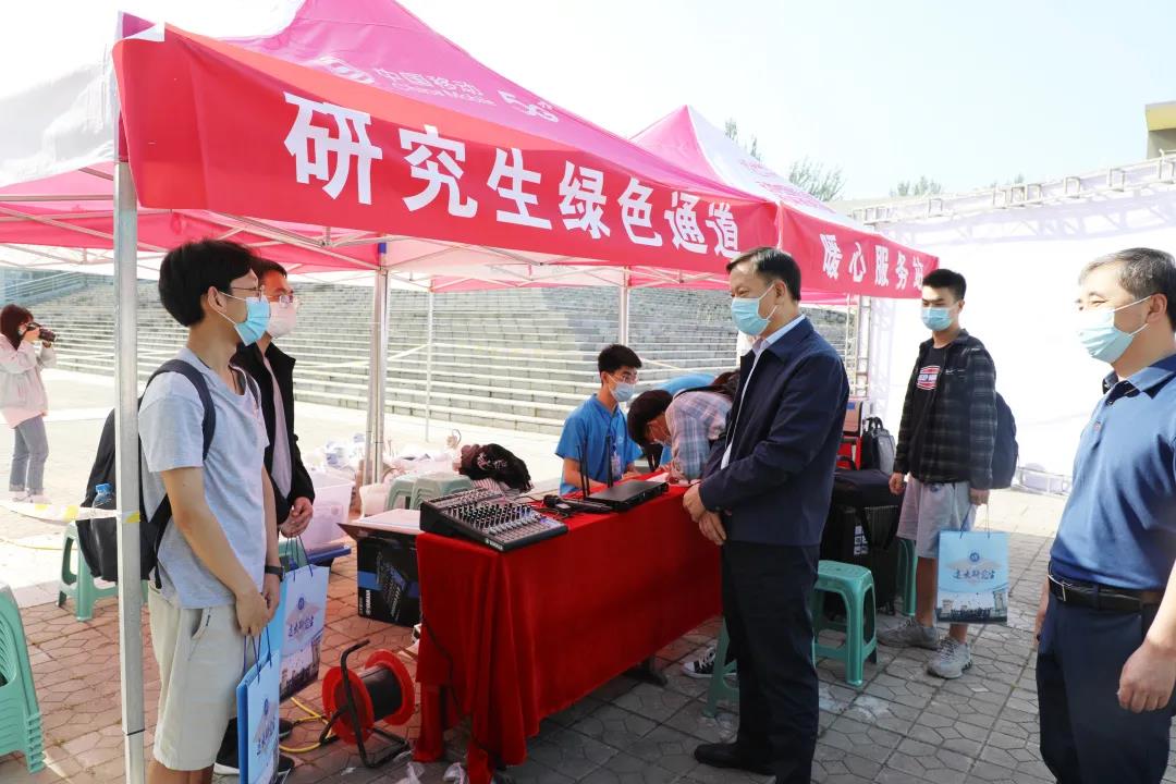 9月8日早上8点,学校党委书记董玉宽及有关部门负责人来到迎新现场检查指导研究生迎新工作,看望刚刚报到的研究生新生,走访慰问研究生入校核酸检测点、绿色通道办理处、各研究生培养单位迎新接待点工作人员和志愿者。走访中,董玉宽详细了解了各研究生培养单位招生情况、迎新进展和疫情防控举措,与研究生进行了热情的交流,仔细询问新生的家庭状况、学科专业方向等情况,叮嘱大家报到期间注意做好个人疫情防控措施,并为特困研究生发放了入学礼包。
