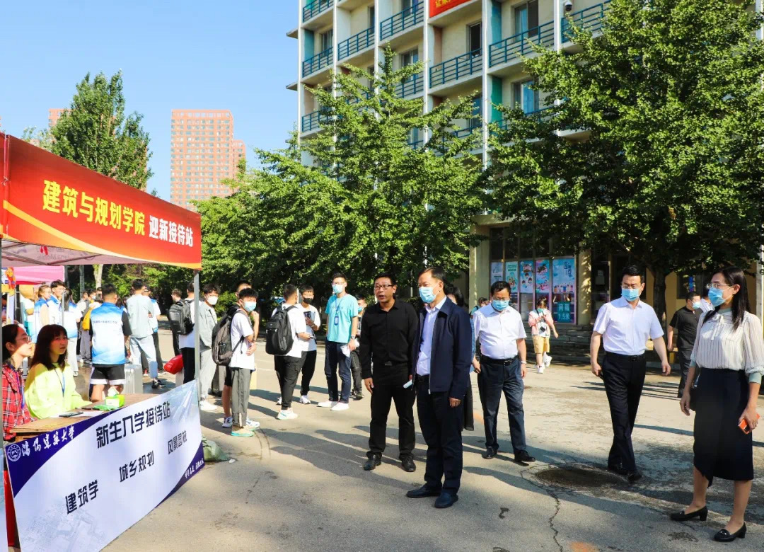 在迎新起点,校党委书记董玉宽,副校长严文复,党委常委、纪委书记、监察专员王利印,副校长李宇鹏,党委常委、副校长冯国会,党委常委、宣传部部长张晓雁看望慰问了报到的新生,悉心询问了新生的基本情况,为新生送去关怀和祝福,叮嘱同学们做好自我防护,尽快适应环境,努力学习、增强本领,以优异的成绩圆梦建大。