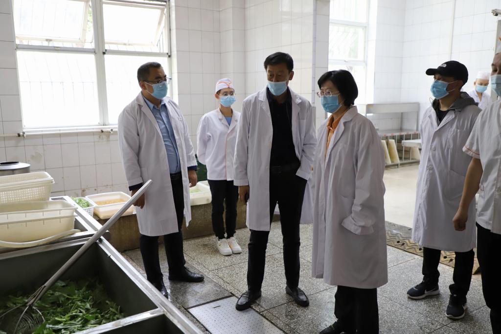 严文复先后到一食堂、二食堂、民族餐厅、四食堂,在生产加工间详细了解了燃气报警、冷冻冰箱、加热蒸箱、餐具清洁等设备使用情况,并现场查看了食品原料储存及库房管理运行情况。
