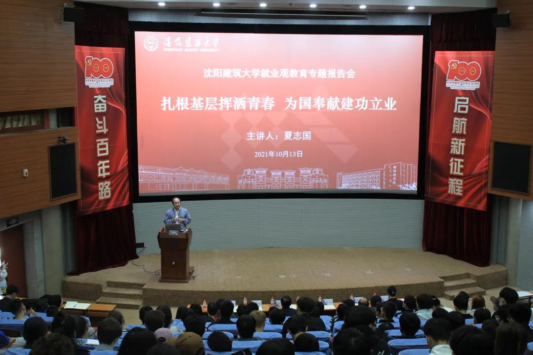 10月13日下午,学校在新宁科学会堂举办学生就业观教育专题报告会,全国劳动模范、全国优秀党务工作者、朝阳环境集团党委书记、董事长、我校96届校友夏志国应邀担任主讲嘉宾,为280余名在校学生代表作了题为“扎根基层挥洒青春、为国奉献建功立业”的报告。此次报告会是深入落实学校部署和要求、继续开展学生就业观教育活动的一项重要内容。