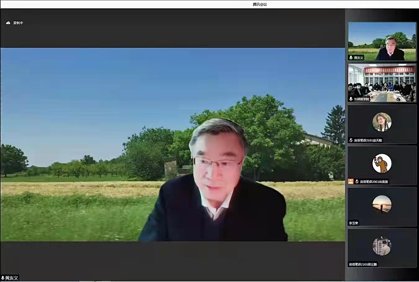 11月30日,翻译界“翘楚”、中国译协常务副会长、中国翻译研究院副院长、原中国外文局副局长、全国翻译专业学位研究生教学指导委员会主任委员黄友义教授应我校邀请,为外国语学院全体师生、国际学院教师在线作了题为“学深悟透、精准翻译、有效传播——参加党政文献翻译的体会”专题讲座。学校在外国语学院资料室搭设线下会场,副校长李宇鹏,教务处、国际交流与合作处、国际学院相关负责同志及外国语学院领导班子,外国语学院英语专业部分学生参加了活动。