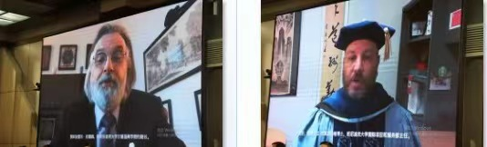 典礼上,班尼迪克大学商学院院长达雷尔·拉德森教授和国际办公室主任大卫·克莱因伯格博士作为美国班尼迪克大学校方代表以视频的方式向全体新生表示了祝贺,并希望全体新生学业有成。