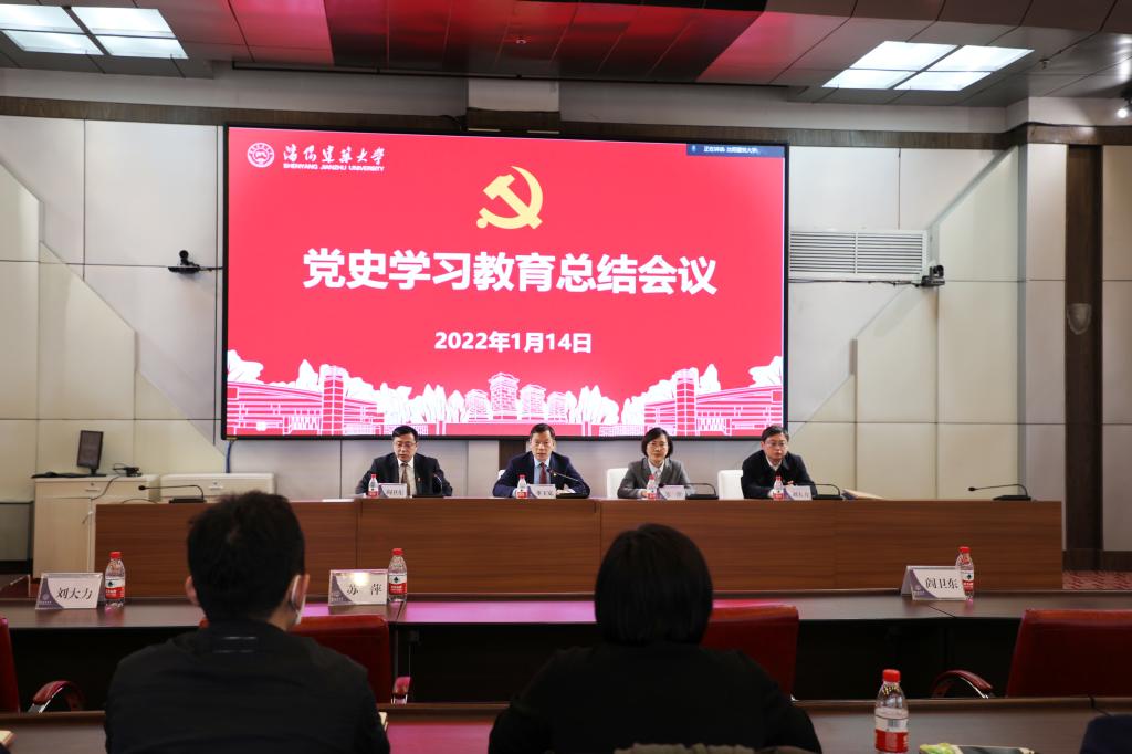 1月14日,学校党史学习教育总结会议在办公楼301会议室召开,深入学习贯彻习近平总书记重要指示精神和中央党史学习教育总结会议精神,回顾总结学校党史学习教育的经验做法,巩固深化党史学习教育成果。省委教育工委高校党史学习教育第五巡回指导组组长、省委教育工委专职副书记苏萍,巡回指导组成员、省委教育工委组织部部长刘大力出席会议。校党委书记董玉宽作党史学习教育总结报告,校党委副书记、校长阎卫东主持会议。校领导严文复、王利印、李宇鹏、冯国会,党委常委曹传明、张晓雁、潘瑞,全体机关党政部门负责人,各基层党委、党总支(直属党支部)书记在主会场参加会议。会议采取线上线下相结合的形式召开,学校其他中层领导干部参加视频会议。